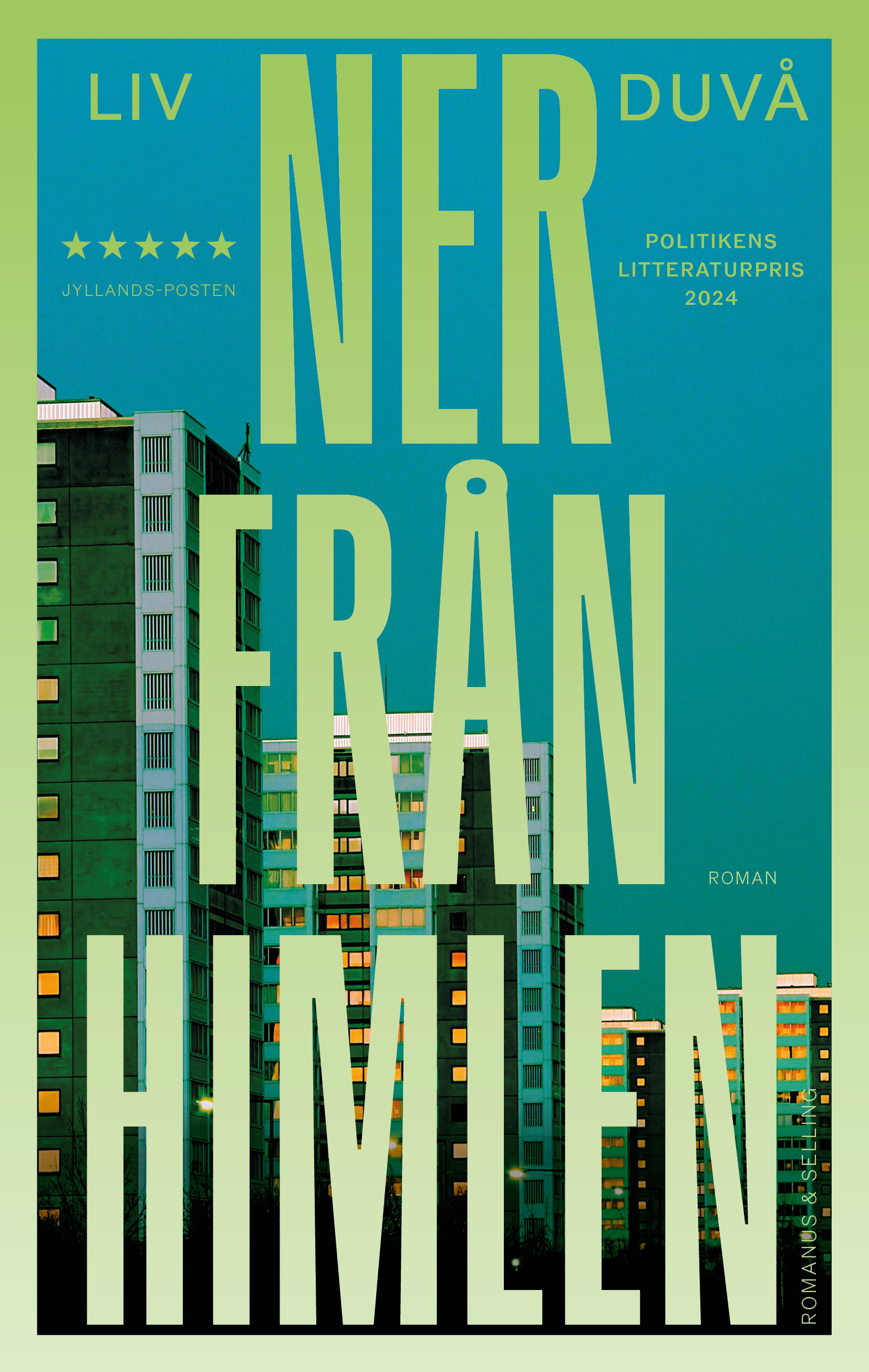 "Ner från himlen" är en socialrealistisk bladvändare och en modern arbetarroman där Duvå med en glasklar blick på samtiden tecknar ett hjärtskärande porträtt av en ung mamma på flykt.